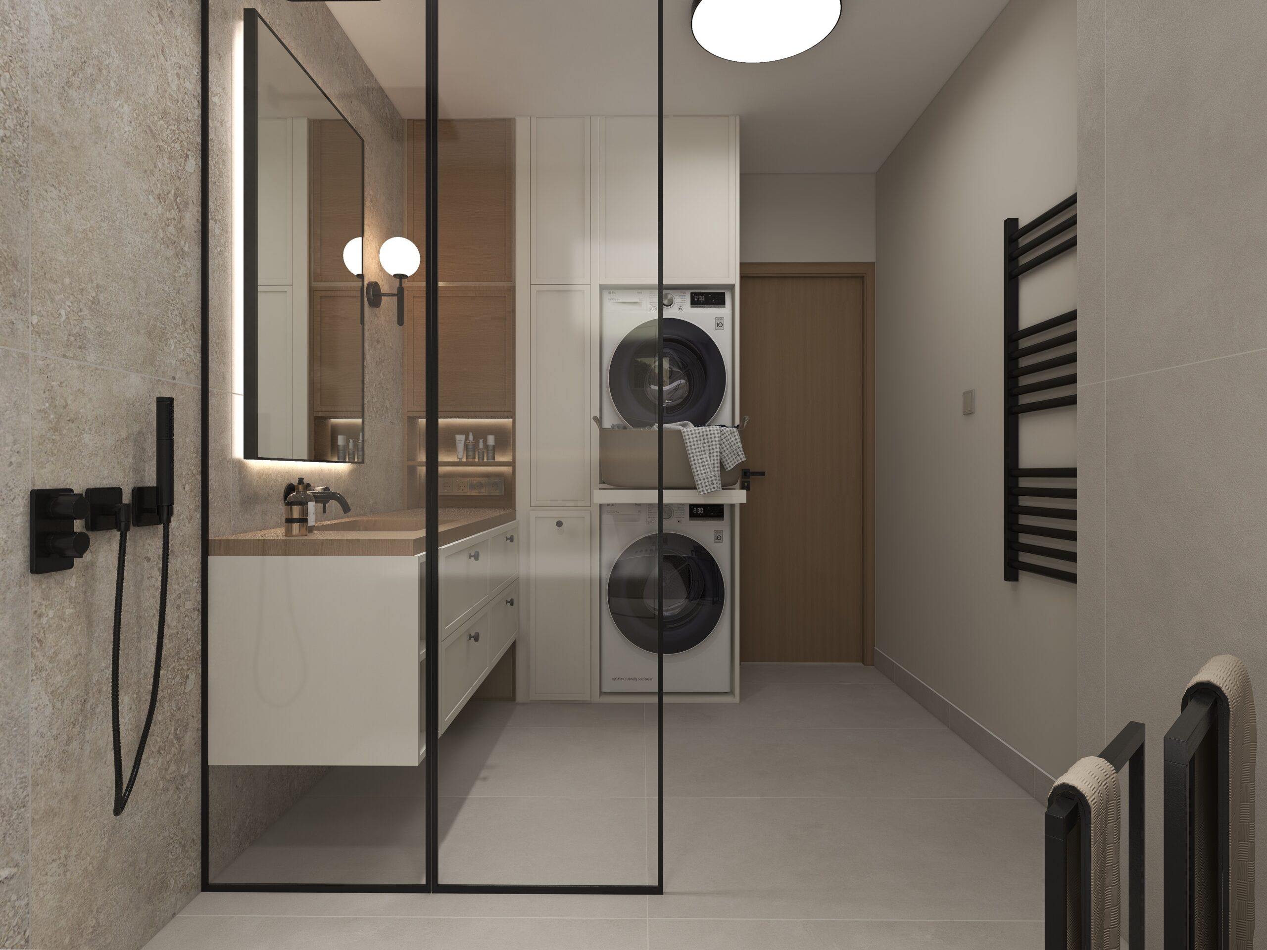 A projekt során célunk, hogy egy háromfős család számára olyan otthont alakítsunk ki, amely nemcsak esztétikailag vonzó, hanem funkcionálisan is hatékony. A belső terek átalakításakor minden részletet úgy terveztünk, hogy illeszkedjen a család igényeihez és életstílusához. A földszinten a nappali, konyha és étkező egyetlen, nyitott térbe integrálásával egy könnyed, otthonos hangulatot hoztunk létre, miközben figyeltünk a tér optimális kihasználására is. A projekt során személyre szabott megoldásokat alkalmaztunk, hogy a megrendelő minden elképzelése megvalósulhasson. A szélfogó bővítése, a home office kialakítása, valamint az emeleti tér új funkcióinak kitalálása mind azt szolgálta, hogy az otthon minden igényt kielégítő, praktikus és kényelmes tér legyen. A dizájnban természetes anyagok és meleg árnyalatok dominálnak, melyek a tér otthonos, barátságos hangulatát erősítik, miközben figyeltünk arra is, hogy a választott anyagok tartósak legyenek.